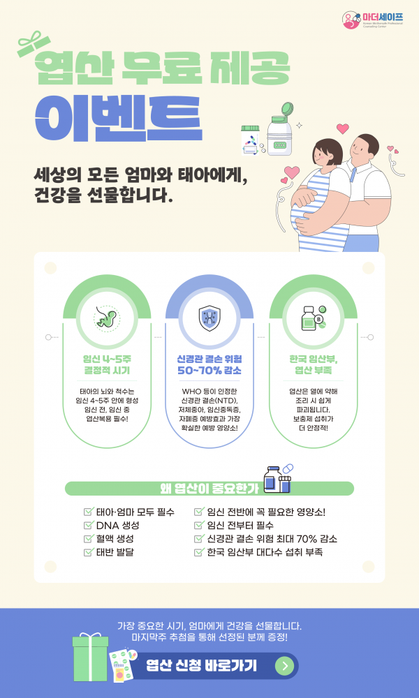 News 마더투베이비의 새로운 소식을 전해드려요. [최근 소식] 엽산 무료 제공 이벤트 페이지 정보 목록 본문 마더투베이비 주식회사와 사단법인 임산부약물정보센터에서 함께 하는 엽산 무료 제공 이벤트에 참여하세요. 관련링크 https://docs.google.com/forms/d/e/1FAIpQLSfoLTz3Fw53-tAPj6AFRc49NA2gXn… 9회 연결